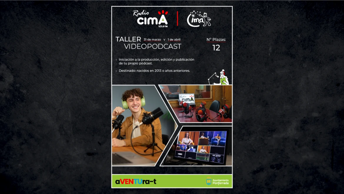 Taller "VideoPodcast" El Videopodcast ha revolucionado la forma en que consumimos contenido, uniendo la intimidad de la radio con la potencia visual del vídeo. En este taller de RadioCima, te enseñamos a dominar este formato híbrido desde cero, transformando una simple charla en un programa con acabado profesional listo para plataformas como YouTube, Twitch o Spotify. Inscripciones Evento Terminado